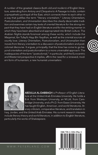 A number of the greatest classics (both old and modern) of English literature, extending from Antony and Cleopatra to A Passage to India, contain a sympathetic portrayal of the East, which connects them to each other in a way that justifies the term «literary orientalism». Literary Orientalism, Postcolonialism, and Universalism describes this clearly discernable tradition and examines certain key texts of oriental literature for the strong impact that they have had on English literature and for the striking manner in which they have been absorbed and appropriated into British culture. The Arabian Nights stands foremost among these works, which include the Maqamat, Ibn Tufayl's Hayy Bin Yaqdhan, as well as the oriental sources of courtly love. Literary Orientalism, Postcolonialism, and Universalism then moves from literary orientalism to a discussion of postcolonialism and postcolonial discourse. It argues, principally, that the time has come to go beyond orientalism and postcolonialism to a more universalist approach. The inadequacies of the term «postcolonial», in particular, and the Eurocentric and Westernist perspective it implies, affirm the need for a renewed, modern form of humanism, a new humanist universalism.
