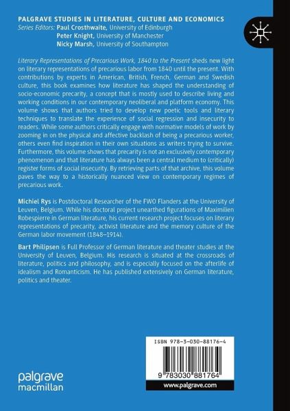 Literary Representations of Precarious Work, 1840 to the Present sheds new light on literary representations of precarious labor from 1840 until the present. With contributions by experts in American, British, French, German and Swedish culture, this book examines how literature has shaped the understanding of socio-economic precarity, a concept that is mostly used to describe living and working conditions in our contemporary neoliberal and platform economy. This volume shows that authors tried to develop new poetic tools and literary techniques to translate the experience of social regression and insecurity to readers. While some authors critically engage with normative models of work by zooming in on the physical and affective backlash of being a precarious worker, others even find inspiration in their own situations as writers trying to survive. Furthermore, this volume shows that precarity is not an exclusively contemporary phenomenon and that literature has always been acentral medium to (critically) register forms of social insecurity. By retrieving parts of that archive, this volume paves the way to a historically nuanced view on contemporary regimes of precarious work.