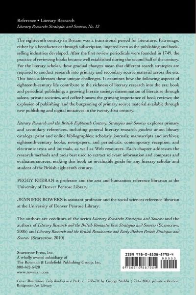 The 18th century in Britain was a transition period for literature. Patronage, either by a benefactor or through subscription, lingered even as the publishing and bookselling industries developed. The practice of reviewing books became well established during the second half of the century, with the first periodical founded in 1749. For the literary scholar, these gradual changes mean that different search strategies are required to conduct research into primary and secondary source material across the era. Literary Research and the British Eighteenth Century addresses these unique challenges. It examines how the following all contribute to the richness of literary research for this era: book and periodical publishing; a growing literate society; dissemination of literature through salons, private societies, and coffee houses; the growing importance of book reviews; the explosion of publishing; and the burgeoning of primary source material available through new publishing and digital initiatives in the 21st century. This volume explores primary and secondary resources, including general literary research guides; union library catalogs; print and online bibliographies; scholarly journals; manuscripts and archives; 18th-century books, newspapers, and periodicals; contemporary reception; and electronic texts and journals, as well as Web resources. Each chapter addresses the research methods and tools best used to extract relevant information and compares and evaluates sources, making this book an invaluable guide to any literary scholar and student of the British eighteenth century.