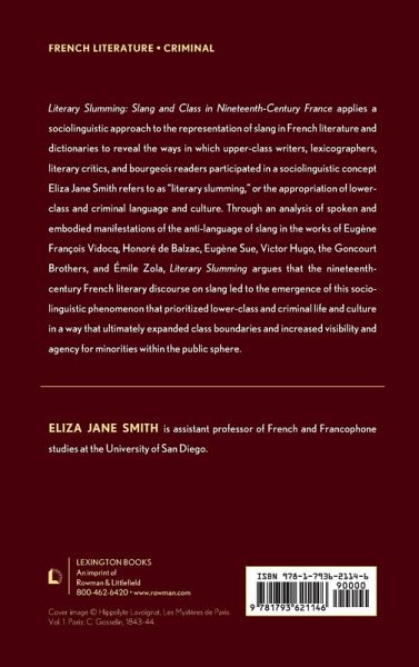 Literary Slumming: Slang and Class in Nineteenth-Century France reveals how the use of slang in French literature and culture led to the emergence of a sociolinguistic phenomenon that prioritized criminal life and culture in a way that expanded class boundaries and increased visibility for minorities within the public sphere.