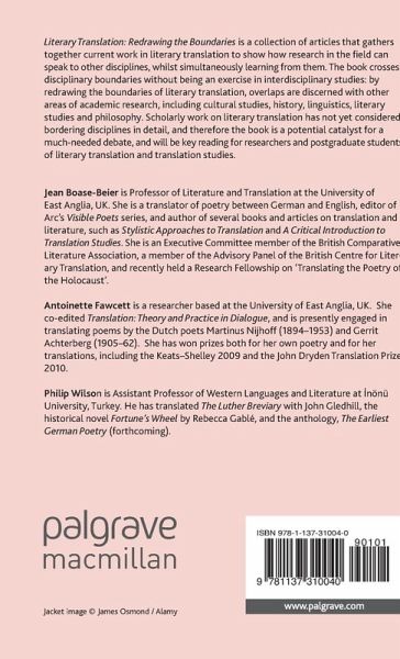 Literary Translation: Redrawing the Boundaries is a collection of articles that gathers together current work in literary translation to show how research in the field can speak to other disciplines such as cultural studies, history, linguistics, literary studies and philosophy, whilst simultaneously learning from them.