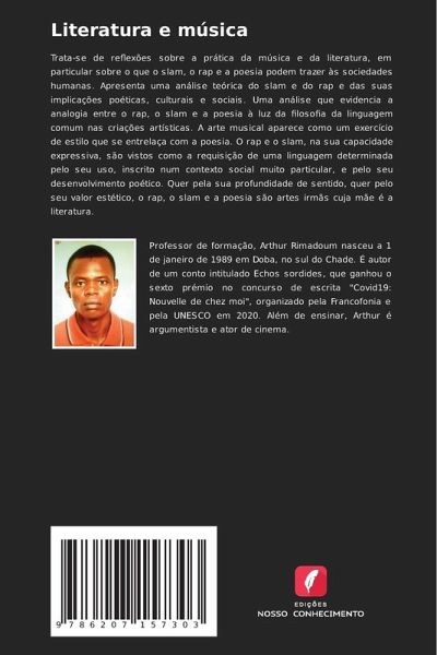 Trata-se de reflexões sobre a prática da música e da literatura, em particular sobre o que o slam, o rap e a poesia podem trazer às sociedades humanas. Apresenta uma análise teórica do slam e do rap e das suas implicações poéticas, culturais e sociais. Uma análise que evidencia a analogia entre o rap, o slam e a poesia à luz da filosofia da linguagem comum nas criações artísticas. A arte musical aparece como um exercício de estilo que se entrelaça com a poesia. O rap e o slam, na sua capacidade expressiva, são vistos como a requisição de uma linguagem determinada pelo seu uso, inscrito num contexto social muito particular, e pelo seu desenvolvimento poético. Quer pela sua profundidade de sentido, quer pelo seu valor estético, o rap, o slam e a poesia são artes irmãs cuja mãe é a literatura.