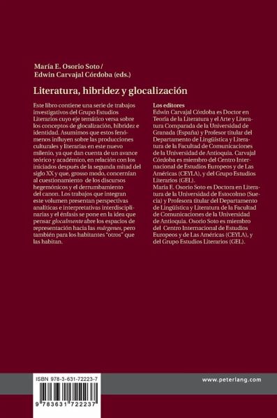 Edwin Carvajal Córdoba es Doctor en Teoría de la Literatura y el Arte y Literatura Comparada de la Universidad de Granada (España) y Profesor titular del Departamento de Lingüística y Literatura de la Facultad de Comunicaciones de la Universidad de Antioquia. Carvajal Córdoba es miembro del Centro Internacional de Estudios Europeos y de Las Américas (CEYLA), y del Grupo Estudios Literarios (GEL). María E. Osorio Soto es Doctora en Literatura de la Universidad de Estocolmo (Suecia) y Profesora titular del Departamento de Lingüística y Literatura de la Facultad de Comunicaciones de la Universidad de Antioquia. Osorio Soto es miembro del Centro Internacional de Estudios Europeos y de Las Américas (CEYLA), y del¿Grupo Estudios Literarios (GEL).