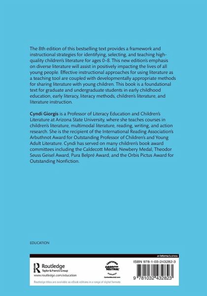 The 8th edition of this bestselling text provides a framework and instructional strategies for identifying, selecting, and teaching high-quality children's literature for ages 0-8. This new edition's emphasis on diverse literature will assist in positively impacting the lives of all young people. Effective instructional approaches for using literature as a teaching tool are coupled with developmentally appropriate methods for sharing literature with young children. This book is a foundational text for graduate and undergraduate students in early childhood education, early literacy, literacy methods, children's literature, and literature instruction.