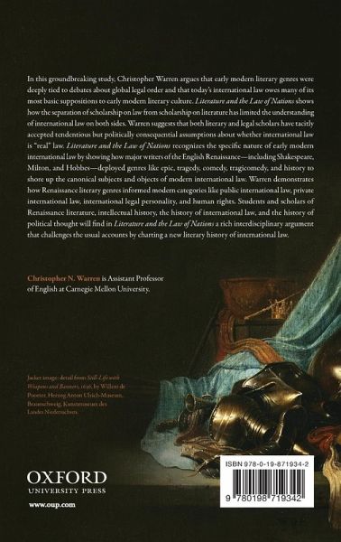 In this groundbreaking study, Christopher Warren argues that early modern literary genres were deeply tied to debates about global legal order and that todayâs international law owes many of its most basic suppositions to early modern literary culture. Literature and the Law of Nations shows how the separation of scholarship on law from scholarship on literature has limited the understanding of international law on both sides. Warren suggests that
