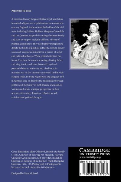 A common literary language linked royal absolutism to radical religion and republicanism in seventeenth-century England. Authors from both sides of the Civil Wars, including Milton, Hobbes, Margaret Cavendish, and the Quakers, adapted the analogy between family and state to support radically different visions of political community. They used family metaphors to debate the limits of political authority, rethink gender roles, and imagine community in a period of social and political upheaval. While critical attention has focused on how the common analogy linking father and king, family and state, bolstered royal and paternal claims to authority and obedience, its meaning was in fact intensely contested. In this wide-ranging study, Su Fang Ng analyses the language and metaphors used to describe the relationship between politics and the family in both literary and political writings and offers a fresh perspective on how seventeenth-century literature reflected as well as influenced political thought.