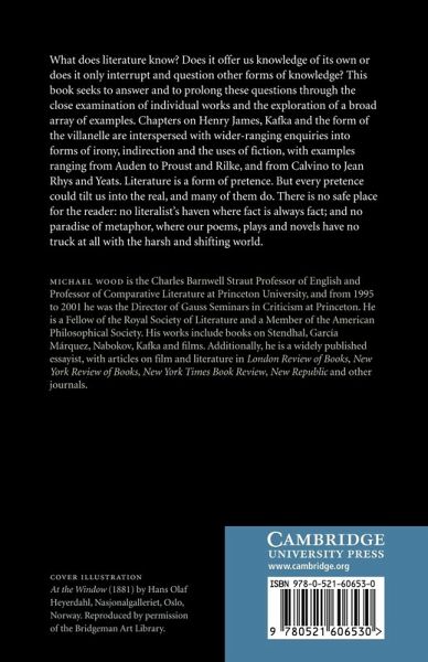 What does literature know? Does it offer us knowledge of its own or does it only interrupt and question other forms of knowledge? This book answers and prolongs these questions through the close examination of individual works and the exploration of a broad array of examples. Chapters on Henry James, Kafka, and the form of the villanelle are interspersed with wider-ranging inquiries into forms of irony, indirection and the uses of fiction. Examples range from Auden to Proust and Rilke, and from Calvino to Jean Rhys and Yeats.