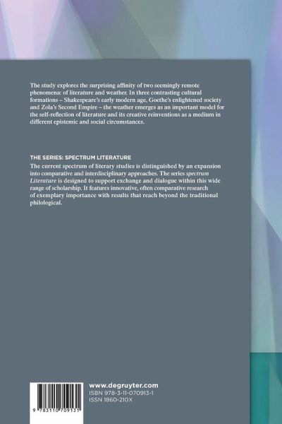 "Literature and Weather. Shakespeare - Goethe - Zola" is dedicated to the relation between literature and weather, i.e. a cultural practice and an everyday phenomenon that has played very different epistemic roles in the history of the world. The study undertakes an archaeology of literature's affinity to the weather which tells the story of literature's weathery self-reflection and its creative reinventions as a medium in different epistemic and social circumstances.