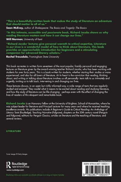 This book recreates in written form seventeen of the most popular, frankly personal and engaging lectures on literature given by the award-winning teacher Richard Jacobs, who has been working with students for over forty years. This is a book written for students, whether starting their studies or more experienced, and also for all lovers of literature. At its heart is the conviction that reading, thinking about, and writing or talking about literature involves us all personally: texts talk to us intimately and urgently, inviting us to talk back, intervening in and changing our lives. These lectures discuss, in an open but richly informed way, a wide range of texts that are regularly studied and enjoyed. They model what it means to be excited about reading and studying literature, and how the study of literature can be life-changing - perhaps even with the effect of changing the lives of readers of this eloquent and remarkable book.