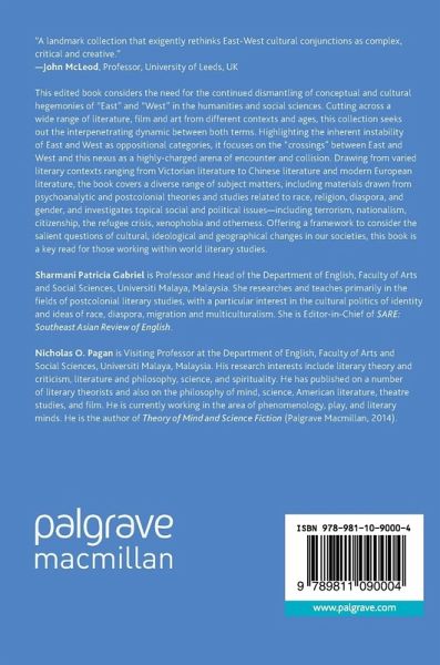 This edited book considers the need for the continued dismantling of conceptual and cultural hegemonies of 'East' and 'West' in the humanities and social sciences. Cutting across a wide range of literature, film and art from different contexts and ages, this collection seeks out the interpenetrating dynamic between both terms. Highlighting the inherent instability of East and West as oppositional categories, it focuses on the 'crossings' between East and West and this nexus as a highly-charged arena of encounter and collision. Drawing from varied literary contexts ranging from Victorian literature to Chinese literature and modern European literature, the book covers a diverse range of subject matter, including material drawn from psychoanalytic and postcolonial theory and studies related to race, religion, diaspora, and gender, and investigates topical social and political issues -including terrorism, nationalism, citizenship, the refugee crisis, xenophobia and otherness. Offering a framework to consider the salient questions of cultural, ideological and geographical change in our societies, this book is a key read for those working within world literary studies.