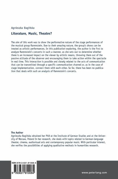 The aim of my work was to show the performative nature of the stage performances of the musical group Rammstein. Due to their amazing nature, the group's shows can be treated as artistic performances. In my dissertation, I will determine whether there is an increased impact on the viewer by artistic means, throwing them out of the passive attitude of the observer and encouraging them to take action within the spectacle in real time. This interaction is possible and closely related to the acts of communication that can be transmitted through a specific communication channel or, as in the case of stage implementation, connect them with each other. So far, there has been no publication that deals with such an analysis of Rammstein's concerts.