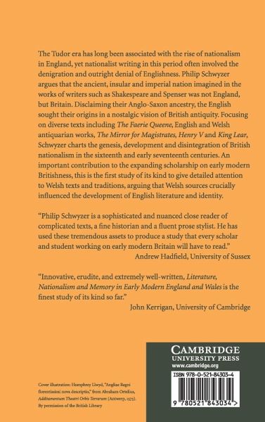 The Tudor era has long been associated with the rise of nationalism in England, yet nationalist writing in this period often involved the denigration and outright denial of Englishness. Philip Schwyzer argues that the ancient, insular, and imperial nation imagined in the works of writers such as Shakespeare and Spenser was not England, but Britain. Disclaiming their Anglo-Saxon ancestry, the English sought their origins in a nostalgic vision of British antiquity. Focusing on texts including The Faerie Queene, English and Welsh antiquarian works, The Mirror for Magistrates, Henry V and King Lear, Schwyzer charts the genesis, development and disintegration of British nationalism in the sixteenth and early seventeenth centuries. An important contribution to the expanding scholarship on early modern Britishness, this study gives detailed attention to Welsh texts and traditions, arguing that Welsh sources crucially influenced the development of English literature and identity.