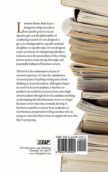 This book is designed to help you achieve one specific goal. It's not designed to give you the philosophies of conducting research. It's not designed to give you a background in a specific academic discipline or a specific topic. It's not designed to give you theory. It's designed specifically to instruct you in the practicalities of the writing process used to create strong, thorough, and potentially bulletproof literature reviews. This book is the culmination of years of research experience. It's also the culmination of several years of teaching writing and critical thinking to doctoral…mehr
