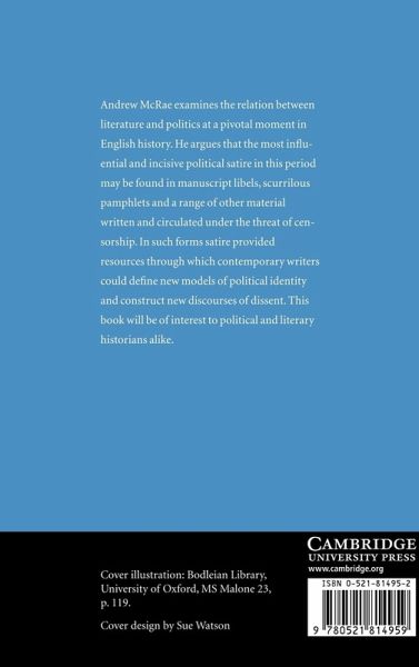 Andrew McRae examines the relation between literature and politics at a pivotal moment in English history. He argues that the most influential and incisive political satire in this period may be found in manuscript libels, scurrilous pamphlets, and a range of other material written and circulated under the threat of censorship. These are the unauthorized texts of early Stuart England. From his analysis of these texts, McRae argues that satire, as the pre-eminent literary mode of discrimination and stigmatization, helped people make sense of the confusing political conditions of the early Stuart era. It did so partly through personal attacks, and partly also through sophisticated interventions into ongoing political and ideological debates. In such forms, satire provided resources through which contemporary writers could define alternative models of political identity and construct interesting discourses of dissent. This book will be of interest to political and literary historians alike.