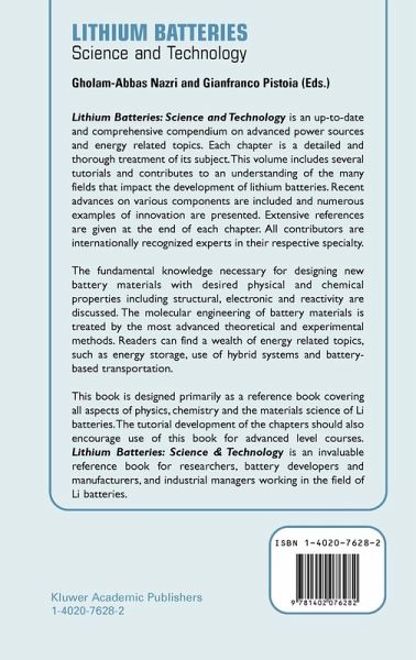 Lithium Batteries: Science and Technology is an up-to-date and comprehensive compendium on advanced power sources and energy related topics. Each chapter is a detailed and thorough treatment of its subject. The volume includes several tutorials and contributes to an understanding of the many fields that impact the development of lithium batteries. Recent advances on various components are included and numerous examples of innovation are presented. Extensive references are given at the end of each chapter. All contributors are internationally recognized experts in their respective specialty. The fundamental knowledge necessary for designing new battery materials with desired physical and chemical properties including structural, electronic and reactivity are discussed. The molecular engineering of battery materials is treated by the most advanced theoretical and experimental methods.