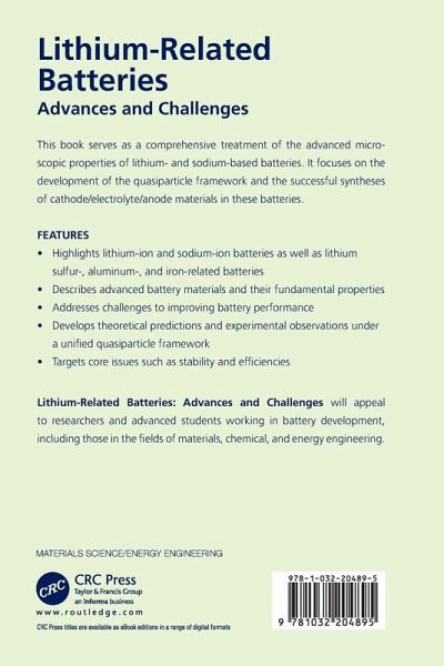Lithium-Related Batteries: Advances and Challenges is a comprehensive treatment of advanced microscopic properties of lithium- and sodium-based batteries. It focuses on the development of the quasiparticle framework and the successful syntheses of cathode/electrolyte/anode materials in these batteries.