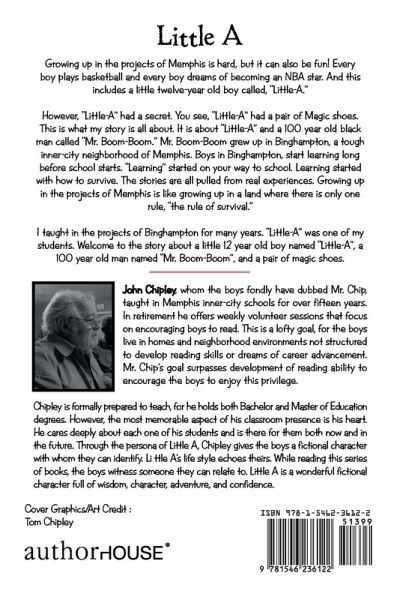 John Chipley, whom the boys fondly have dubbed Mr. Chip, taught in Memphis inner-city schools for over fifteen years. In retirement he offers weekly volunteer sessions that focus on encouraging boys to read. This is a lofty goal, for the boys live in homes and neighborhood environments not structured to develop reading skills or dreams of career advancement. Mr. Chips goal surpasses development of reading ability to encourage the boys to enjoy this privilege. Chipley is formally prepared to teach, for he holds both Bachelor and Master of Education degrees. However, the most memorable aspect of his classroom presence is his heart. He cares deeply about each one of his students and is there for them both now and in the future. Through the persona of Little A, Chipley gives the boys a fictional character with whom they can identify. Little A's life style echoes theirs. While reading this series of books, the boys witness someone they can relate to. Little A is a wonderful fictional character full of wisdom, character, adventure, and confidence.