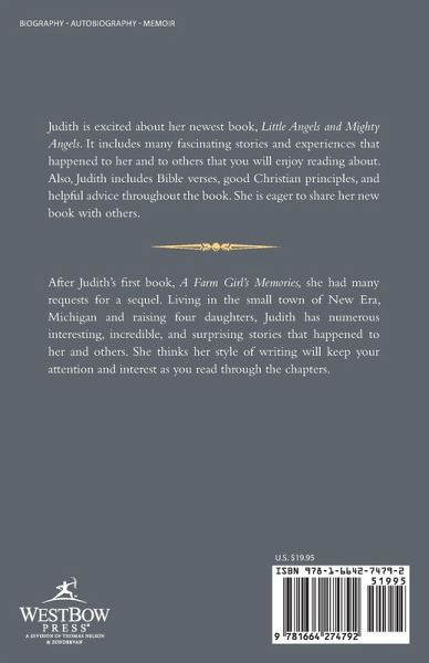 Judith is excited about her newest book, Little Angels and Mighty Angels. It includes many fascinating stories and experiences that happened to her and to others that you will enjoy reading about. Also, Judith includes Bible verses, good Christian principles, and helpful advice throughout the book. She is eager to share her new book with others.