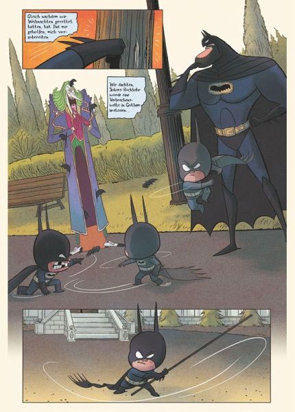 KLEINER BATMAN - GROSSER KRIEGER! Damian Wayne ist der Sohn des Milliardärs Bruce Wayne. Und der ist insgeheim auch der Held Batman, der nachts Schurken in der Stadt Gotham City jagt. Aber für Damian sind nicht Superverbrecher das Schlimmste, sondern stinklangweilige Empfänge in der Prachtvilla seiner Familie! Dort muss Batman Junior den braven Sohn spielen. Dabei steckt in ihm doch ein gnadenloser Verbrecherjäger, der darauf brennt, auf den Abschaum von Gotham City losgelassen zu werden! Doch als ein gruseliger Superschurke die Party sprengt und mit Bruce Wayne in der Nacht verschwindet, bleibt Damian gar nichts anderes übrig, als ins Superhelden-Kostüm zu schlüpfen ... und als Little Batman auf die Jagd nach seinem entführten Vater zu gehen! Der Comic zum Amazon-Cartoon Hit Merry Little Batman!