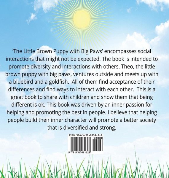 The Little Brown Puppy with Big Paws' encompasses social interactions that might not be expected. The book is intended to promote diversity and interactions with others. Theo, the little brown puppy with big paws, ventures outside and meets up with a bluebird and a goldfish. All of them find acceptance of their differences and find ways to interact with each other. This is a great book to share with children and show them that being different is ok. This book was driven by an inner passion for helping and promoting the best in people. I believe that helping people build their inner character will promote a better society that is diversified and strong.
