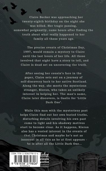 Claire Becker was approaching her twenty-eighth birthday on the night she was killed. Her tragic passing, somewhat poignantly, came hours after finding the truth about what really happened to her family, all those years ago. The precise events of Christmas Day, 1997, would remain a mystery to Claire until the last hours of her life. All those involved that night have a story to tell, and Claire is dead set on uncovering the truth. After seeing her cousin's face in the paper, Claire sets out on a journey of self-discovery back to her native Scotland. Along the way, she meets the mysterious stranger, Kieran, who takes an unlikely interest in helping her. The man's name, Claire later discovers, is Gaelic for 'Little Dark One'. While this man with the mysterious past helps Claire find out her own buried truths, disturbing details involving his own past come to light and his shadowy motives start to become clear. As it happens, Kieran also has a vested interest in the events of that Christmas and maybe he's not as innocent in all this as he at first appears - he is after all the Little Dark One...