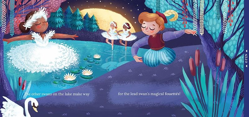 Ballet is for feet, and now fingers too! Slip into your mini pointe shoes! Being a prima ballerina is simple with Little Fingers Ballet! Flip through the pages and become the star of classic ballets. The six spreads feature scenes from Coppellia, Cinderella, La Bayadere, The Nutcracker, Romeo & Juliet, and Swan Lake. Each page gives the reader a ballet step to practice from the actual choreography of the scene.