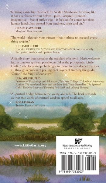 Little Garlic is a delightful way to inspire children with spiritual wisdom. The stories evoke Richard Bach's Illusions and Antoine de Saint-Exupery's The Little Prince, with a young protagonist "Little Garlic" and his guide "Onion," whose layered wisdom provides a passageway to spiritual discovery for all ages. Little Garlic will nurture a feeling of being at home in the universe. ADVANCE PRAISE "Nothing exists like this book by Avideh Shashaani. Nothing like it has ever been written before-pure-original-tender-imaginative-free of author ego-it feels as if it comes not from human hands, but instead from kindness, spirit and air." Grace Cavalieri, Maryland Poet Laureate "The world-through your witness-has nothing to lose and everything to gain." Richard Rohr, Founder, Center for Action and Contemplation, Internationally Recognized Author and Spiritual Leader "Avideh Shashaani has written a family story that surpasses the standard of a myth. Here, welcome into a timeless spiritual parable, as old as the protagonist 'Garlic,' who faces steep challenges to then discover deeper realities, all through a process of peeling back layers of truth by the guide, 'Onion,' the Virgil of our story." Lisa Miller, Ph.D., Professor of Psychology and Education, Teachers College, Columbia University; Author, The Awakened Brain and the New York Times Bestseller, The Spiritual Child: The New Science of Parenting for Health and Lifelong Thriving "A spiritual bridge between the young and old. The book reminds us that true words of spiritual wisdom appeal to all ages." Rob Lehman, Trustee, Fetzer Institute