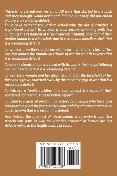 The novel "A Little Ghost" opens its world with a reality scarred by war. Its young hero, Shabil, is forced to move to a safe place, and then finds himself on an adventure to move across the sea to another, different place. The sea will be a means like a wormhole, or a vehicle to travel through time to a completely different place, a place that is the opposite of everything the protagonist lives. He will move from a hell ruled by war to a world ruled by science. The novel follows two tracks: a social one, which talks about war, and a larger fantasy track, which talks about science fiction. In the first track, the narrator talks about the war and its consequences, and in the other track, she reveals how the other side of the world has reached an incredible degree of knowledge. There is a parallel track that talks about the heritage of Andalusia, its beauty, its history, and its hidden secrets that Shabil reveals and discovers for the first time. With this invocation of history, he wants to tell us that our ancient ancestors built a civilization worthy of pride. After his trip, Shabil returns to his village to discover that reality has not changed, but rather has gotten worse. Thus, the novel conveyed its message: In order for our hellish reality to change into one governed by knowledge and glory, we must always choose peace. Quotations from the novel: "If the Lantern Genie appeared to you, Father, and told you that he would grant you one wish, just one, what would you choose? My father smiled and said: I will tell him: Give us a day without death. "War destroys everything, but it cannot destroy the human being within us." "Never side with war. If one day you have to choose between war and peace, choose peace, even if you are confident of winning the war."