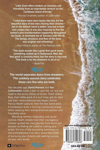 The world separates doers from dreamers. This award-winning true story is for the rare few who are both. David Putnam and Yair Lichtenstein aren't business gurus. Yet they uprooted their lives for a dream, and for the past two decades have run a thriving, much-beloved surf shop in the heart of the Caribbean. All while keeping the spark of entrepreneurial passion (and their friendship) alive. It's a lesson in freedom that most of us learn the hard way. When a high-stress job sent author Marcia Heath to the ER with unexplained memory loss, she was forced to a reckoning. Quitting on medical grounds was easy - but why did she have to be pushed to breaking point? Why didn't she just jump sooner? And most worryingly of all, what should she do now? The answer lay on the shores of Aruba. Inspired by David and Yair's daring, Marcia found herself compiling their unconventional wisdom into the book she wished she'd had all along. Whether you're ready for a change or dreaming of one, Little Giant dares you to hit the reset button on your own life and pursue whatever's knocking at the door of your heart. "This book sounds like a great feel-good movie, something cooked up in Hollywood. It's about the dreamers in all of us." -BOOKTRIB