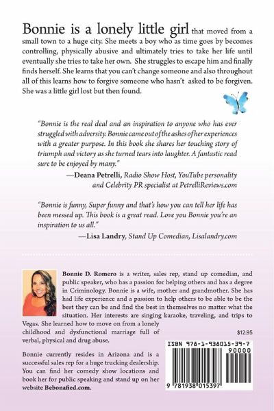 Bonnie is a lonely little girl that moved from a small town to a huge city. She meets a boy who as time goes by becomes controlling, physically abusive and ultimately tries to take her life until eventually she tries to take her own,,She struggles to escape from and finally finds herself. She learns that you can't change someone and also throughout all of this learns how to forgive someone who hasn't asked to be forgiven. She was a little girl lost but then found