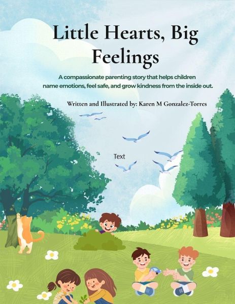 Little Hearts, Big Feelings(TM) is a warm, compassionate picture book designed to help young children name emotions, build emotional safety, and practice kindness through everyday moments. Written in gentle, rhythmic language, this story walks children through common feelings-happiness, sadness, anger, fear, and frustration-while modeling self-regulation, repair, and resilience. Each page invites connection, reminding children that all feelings are welcome and that support, breathing, and trying again help big emotions settle. Unique to this book, caregivers are supported through Compassionate Parenting Notes included at the back, offering simple, trauma-informed guidance rooted in connection, empathy, and co-regulation. Created by trauma-informed educator Karen Gonzalez-Torres, Little Hearts, Big Feelings(TM) nurtures emotional awareness, kindness, and confidence-helping little hearts grow strong roots for life. Recommended for ages 2-6