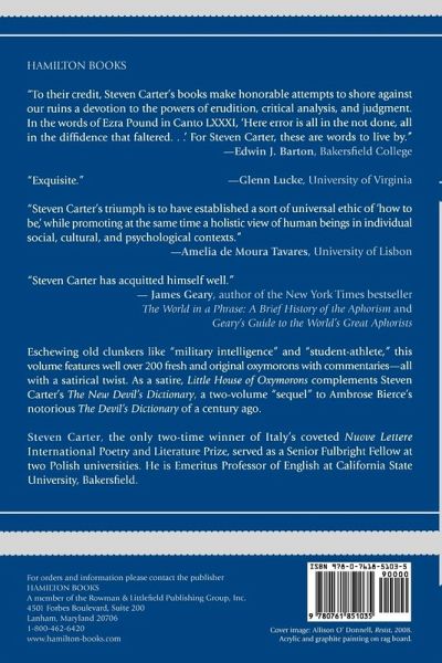 This volume features well over 200 fresh and original oxymorons with commentaries-all with a satirical twist. As a satire, Little House of Oxymorons complements Steven Carter's The New Devil's Dictionary, a two-volume "sequel" to Ambrose Bierce's notorious The Devil's Dictionary of a century ago.