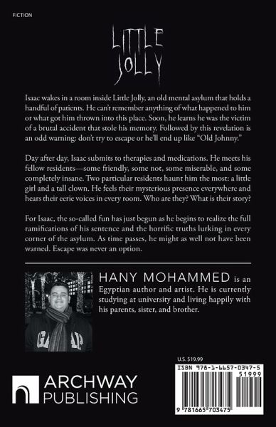 Isaac wakes in a room inside Little Jolly, an old mental asylum that holds a handful of patients. He can't remember anything of what happened to him or what got him thrown into this place. Soon, he learns he was the victim of a brutal accident that stole his memory. Followed by this revelation is an odd warning: don't try to escape or he'll end up like "Old Johnny." Day after day, Isaac submits to therapies and medications. He meets his fellow residents-some friendly, some not, some miserable, and some completely insane. Two particular residents haunt him the most: a little girl and a tall clown. He feels their mysterious presence everywhere and hears their eerie voices in every room. Who are they? What is their story? For Isaac, the so-called fun has just begun as he begins to realize the full ramifications of his sentence and the horrific truths lurking in every corner of the asylum. As time passes, he might as well not have been warned. Escape was never an option.
