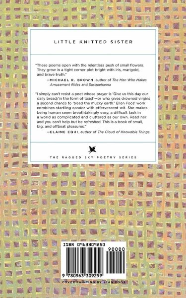 The poems in this collection have a level gaze. We smile at the foibles of people and relationships exposed here-the church organist, Snow White, the carefully balanced "un-couple"-yet finally we're sympathetically implicated with them. Spare, quick-moving narratives carry us along for a day at the beach, a family reunion, a last ferry ride, each of which is more-is a key to the meaning of a life. Foos is particularly appealing when writing about flawed but loving families. These are deeply compassionate poems. Even a searing political poem-and it's a knockout-gets its power as much from sorrow as from anger. After all, as Foos says, we're just happy mutts, "looking for crowns for our efforts." "These poems open with the relentless push of small flowers. They grow in a tight corner plot bright with iris, marigold, and brave truth." -Michael R. Brown, author of The Man Who Makes Amusement Rides "I simply can't resist a poet whose prayer is 'Give us this day our daily bread/in the form of toast'-or who gives drowned virgins a second chance to 'tread the mucky earth.' Ellen Foos' work combines startling candor with effervescent wit. She makes being human seem breathtakingly easy, a difficult task in a world as complicated and cluttered as our own. Read her and you can't help but be refreshed. This is a book of small, big, and offbeat pleasures." - Elaine Equi, author of The Cloud of Knowable Things