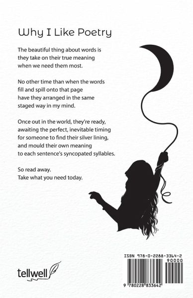 Why I Like Poetry The beautiful thing about words is they take on their true meaning when we need them most. No other time than when the words fill and spill onto that page have they arranged in the same staged way in my mind. Once out in the world, they're ready, awaiting the perfect, inevitable timing for someone to find their silver lining, and mould their own meaning to each sentence's syncopated syllables. So read away. Take what you need today.