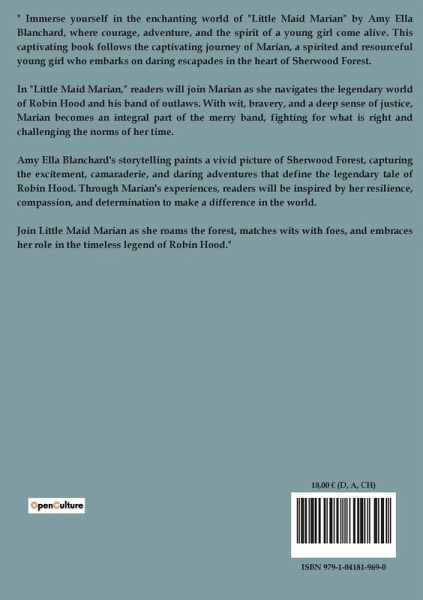 " Immerse yourself in the enchanting world of "Little Maid Marian" by Amy Ella Blanchard, where courage, adventure, and the spirit of a young girl come alive. This captivating book follows the captivating journey of Marian, a spirited and resourceful young girl who embarks on daring escapades in the heart of Sherwood Forest. In "Little Maid Marian," readers will join Marian as she navigates the legendary world of Robin Hood and his band of outlaws. With wit, bravery, and a deep sense of justice, Marian becomes an integral part of the merry band, fighting for what is right and challenging the norms of her time. Amy Ella Blanchard's storytelling paints a vivid picture of Sherwood Forest, capturing the excitement, camaraderie, and daring adventures that define the legendary tale of Robin Hood. Through Marian's experiences, readers will be inspired by her resilience, compassion, and determination to make a difference in the world. Join Little Maid Marian as she roams the forest, matches wits with foes, and embraces her role in the timeless legend of Robin Hood."