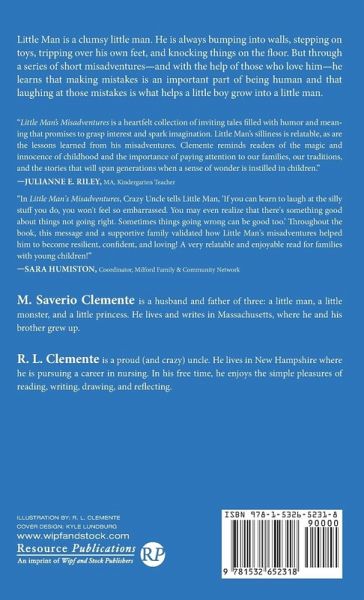 Little Man is a clumsy little man. He is always bumping into walls, stepping on toys, tripping over his own feet, and knocking things on the floor. But through a series of short misadventures--and with the help of those who love him--he learns that making mistakes is an important part of being human and that laughing at those mistakes is what helps a little boy grow into a little man.