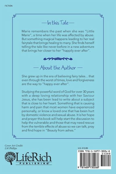 In this Tale Marie remembers the past when she was "Little Marie", a time when her life was affected by abuse. But something magical happens leading to her real fairytale that brings healing to many. She finds herself telling the tale like never before in a new adventure that brings her closer to her "happily ever after".