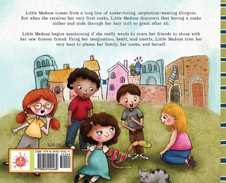 Little Medusa comes from a long line of snake-loving, serpentine-wearing Gorgons. When she receives her very first snake, Little Medusa discovers that having a snake slither and slide through her hair isn't so great after all. And to make matters more difficult, she begins questioning if she really wants to scare her friends to stone with her new forever friend. Using her imagination and heart, Little Medusa tries her best to please her family, her best-pet snake, and herself. Based on Greek Mythology, Little Medusa features Common Core Connections and explores the universal themes of following family tradition and staying true to oneself.