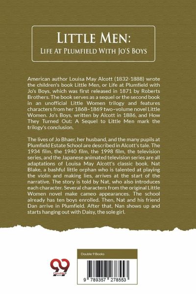 American author Louisa May Alcott (1832-1888) wrote the children's book Little Men, or Life at Plumfield with Jo's Boys, which was first released in 1871 by Roberts Brothers. The book serves as a sequel or the second book in an unofficial Little Women trilogy and features characters from her 1868-1869 two-volume novel Little Women. Jo's Boys, written by Alcott in 1886, and How They Turned Out: A Sequel to Little Men mark the trilogy's conclusion. The lives of Jo Bhaer, her husband, and the many pupils at Plumfield Estate School are described in Alcott's tale. The 1934 film, the 1940 film, the…mehr