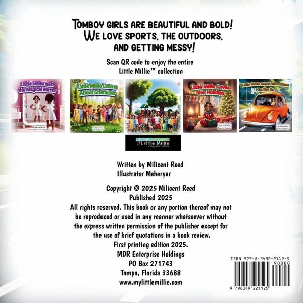 Little Millie Tomboy Club is all about fun, adventure, and breaking the mold! This lively installment takes readers on a journey through Little Millie's childhood, where she thrived alongside the boys-jumping from trees, playing sports, and making epic cannonballs in the pool. Unlike the "prissy" activities like baking or cooking, Millie gravitated toward the rough-and-tumble challenges that fueled her fearless spirit. Affectionately coined "BeBe Football" by her big brothers, Little Millie was embraced for her tomboy ways, proving that confidence and joy know no boundaries. Little Millie Tomboy Club celebrates diversity, inclusivity, and the magic of childhood friendships, making it a must-read in the Little Millie Collection's first installation!