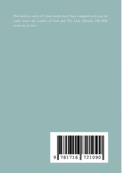 The book is a compilation of three short stories combined to make up one book. The stories in this book, talks about life situations and how God's miracles in our lives may be subtle but are Little Miracles that he or she (GOD)performs each day in our lives.