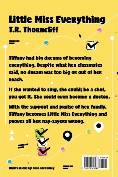 Tiffany had big dreams of becoming everything. Despite what her classmates said, no dream was too big or out of her reach. If she wanted to sing, she could; be a chef, you got it. She could even become a doctor. With the support and praise of her family, Tiffany becomes Little Miss Everything and proves all her nay-sayers wrong.