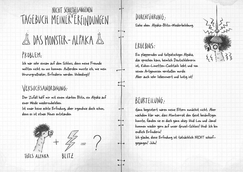 orangebraunes Lieblingsalpaka bewegungslos auf der Weide liegen findet, beschließt sie wie damals der Urururgroßvater sein Monster wiederbelebt hatte, auch dieses Wesen durch einen Blitz erneut zum Leben zu erwecken.