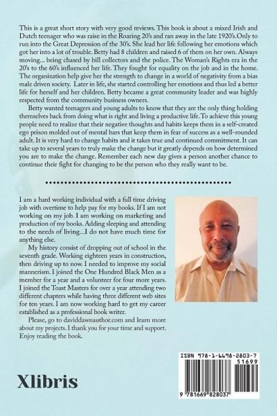 This is a great short story with very good reviews. This book is about a mixed Irish and Dutch teenager who was raise in the Roaring 20's and ran away in the late 1920's.Only to run into the Great Depression of the 30's. She lead her life following her emotions which got her into a lot of trouble. Betty had 8 children and raised 6 of them on her own. Always moving... being chased by bill collectors and the police. The Woman's Rights era in the 20's to the 60's influenced her life. They fought for equality on the job and in the home. The organization help give her the strength to change in a world of negativity from a bias male driven society. Later in life she started controlling her emotions and thus led a better life for her self and her children. Betty became a great community leader and was highly respected from the community business owners. Betty wanted teenagers and young adults to know that they are the only thing holding themselves back from doing what is right and living a productive life. To achieve this young people need to realize that their negative thoughts and habits keeps them in a self-created ego prison molded out of mental bars that keep them in fear of success as a well-rounded adult. It is very hard to change habits and it takes true and continued commitment. It can take up to to several years to truly make the change but it greatly depends on how determined you are to make the change. Remember each new day gives a person another chance to continue their fight for changing to be the person who they really want to be.