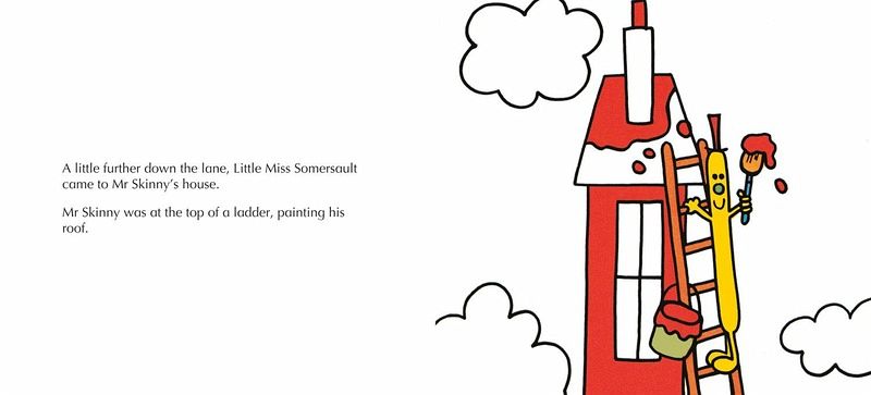 Little Miss Somersault is very acrobatic! When she wants to get somewhere she doesn't walk she does cartwheels instead.