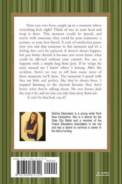 They've been together for over five years, spending every minute of their time together to keep away from their own family troubles. After an accident leaving both of them hospitalized, Jack discovers there's something more going on with his body. Before and after the intense diagnosis, his girlfriend Willow has been trying to help, but she feels she can only hurt him more. Told from Willow's point of view, the fate of the young couple remains altered as Jack continues to grow more sick and tired. Can Willow learn how to protect him without hurting him, or will she lose herself in the process?