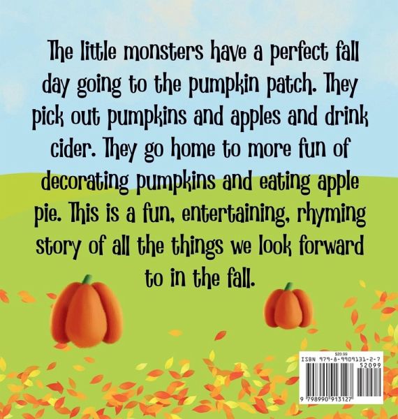 The Little Monsters have a perfect fall day going to the pumpkin patch. They pick out pumpkins and apples and drink cider. They go home to more fun of decorating pumpkins and eating apple pie. This is a fun, entertaining, rhyming story of all the things we look forward to in the fall.