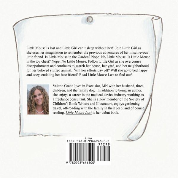 Have you ever wondered where your stuffed animals or blankies are when you can't find them? "Where is Little Mouse?" Little Girl calls from upstairs..."I need her, I want her, I've looked everywhere. She isn't where she's supposed to be. I want her back, I want her with me!" Come along with Little Girl as we search for her adventurous Little Mouse. Will she find her special friend? Will she think of all the right places to look? Snuggle up with your own special friend and find out. Then, the next time your can't find your Giraffe, Bear, or Blankie, you might just know where to start looking! If you enjoy Velveteen Rabbit, the Rebel Girls Bedtime Stories and the illustration style of Anita Jeram, this book is sure to find a place in your child's heart. Written in verse and featuring a little girl protagonist, this bedtime story will empower all children to solve their own problems.