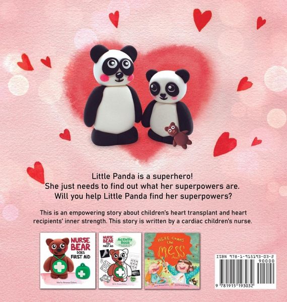 Little Panda is an extraordinary superhero on a quest to discover her incredible powers! Join her in the heartwarming and empowering picture book, "Little Panda and Her Super Heart: a heart transplant story" Designed for children aged 2 to 7 years old, this captivating story is brought to life with enchanting clay illustrations that transport readers into a world of bravery and self-assurance. While the focus revolves around congenital heart defects, heart surgery, and heart transplants, Little Panda's journey will resonate with children facing various types of surgeries or transplants. Through the book's relatable narrative, young readers will explore themes of courage, resilience, and the power of self-belief. The visually stunning pages of "Little Panda and Her Super Heart" also serve as educational tools. Real-life medical equipment, including electrocardiogram (ECG), thermometer, pulse oximeter, and nasogastric tubes, are expertly incorporated into the illustrations. By familiarizing children with these tools, the book aims to alleviate their fears and anxieties, providing a positive and empowering introduction to the medical world. Will you embark on this delightful adventure with Little Panda as she uncovers her extraordinary superpowers? Prepare to be inspired!